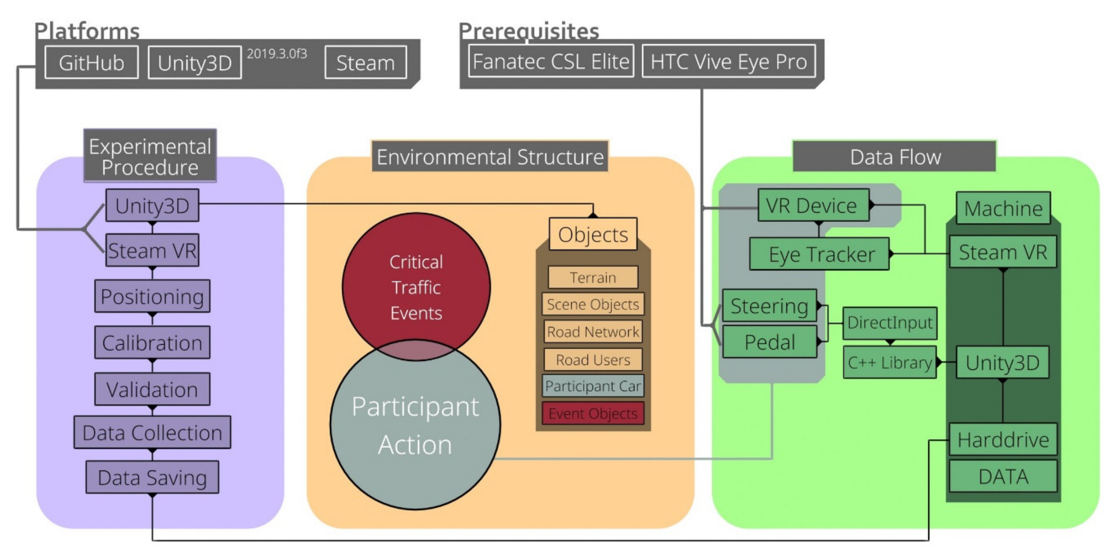 - Implemented hardware integration (Vive Pro Eye, Fanatec, C++ DirectInput)