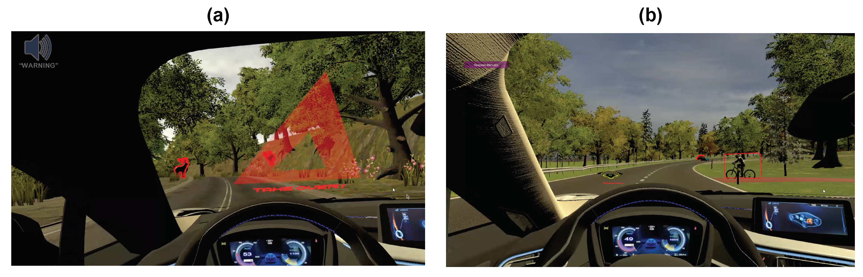 - Huang, A., Derakhshan, S., Madrid-Carvajal, J., Nosrat Nezami, F., Wächter, M. A., Pipa, G., & König, P. (2024). Enhancing safety in autonomous vehicles: The impact of auditory and visual warning signals on driver behavior and situational awareness. Vehicles, 6(3), 1613–1636. https://doi.org/10.3390/vehicles6030076